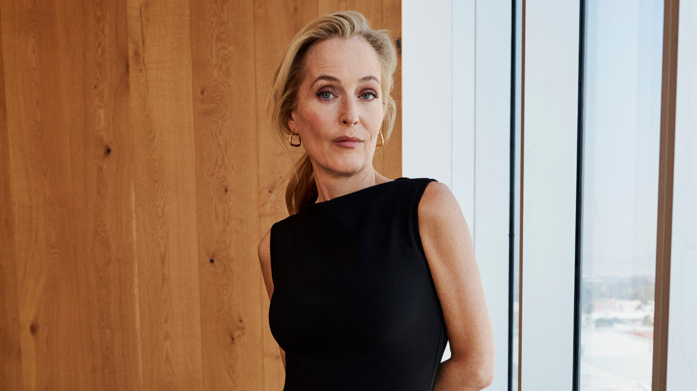 Gillian Anderson carries the heritage trend into spring with an Argyle jumper, skinny jeans and biker boots outfit ...